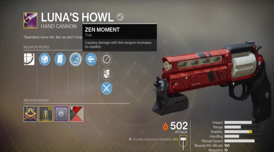 Mirando y revisando las armas de Destiny 2 me he encontrado en un hilo de reddit con que existe un cañón de mano mejor que el as de picas. Un arma de esas en las que te tiras mucho tiempo intentando conseguir los requisitos para poder incluirla en tu arsenal, como podría ser el señor de los lobos o Chaperone, el arma en cuestión se llama el aullido de Luna (Luna’s Howl)